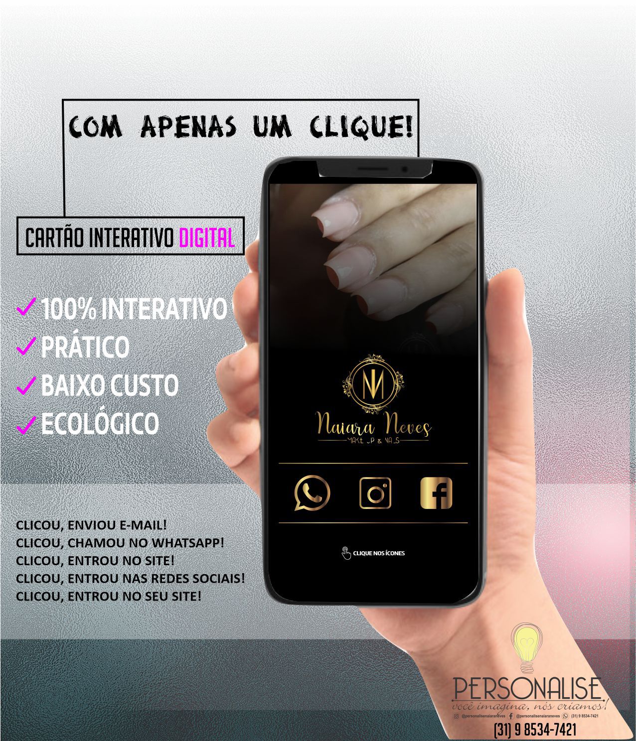 Cartão digital interativo personalizado com a sua marca! Para a criação deste produto o cliente deve possuir a sua logotipo em PDF ou EPS ( abertos ) ou criando a sua logotipo conosco! O cartão interativo/digital é uma forma mais prática de compartilhar suas redes sociais e links através de um toque.Nesse cartão podemos adicionar seu facebook, instagram, whatsapp, site, e-mail etc. A pessoa irá abrir e os ícones serão clicáveis, as direcionando para as páginas escolhidas.Apenas o arquivo digital.Produto entregue em PDF.
