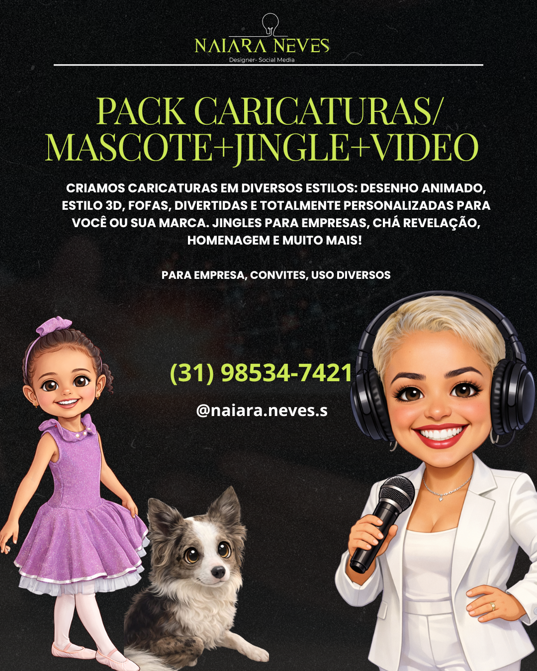 Caricaturas, mascotes e vídeo com música personalizada para sua marca!