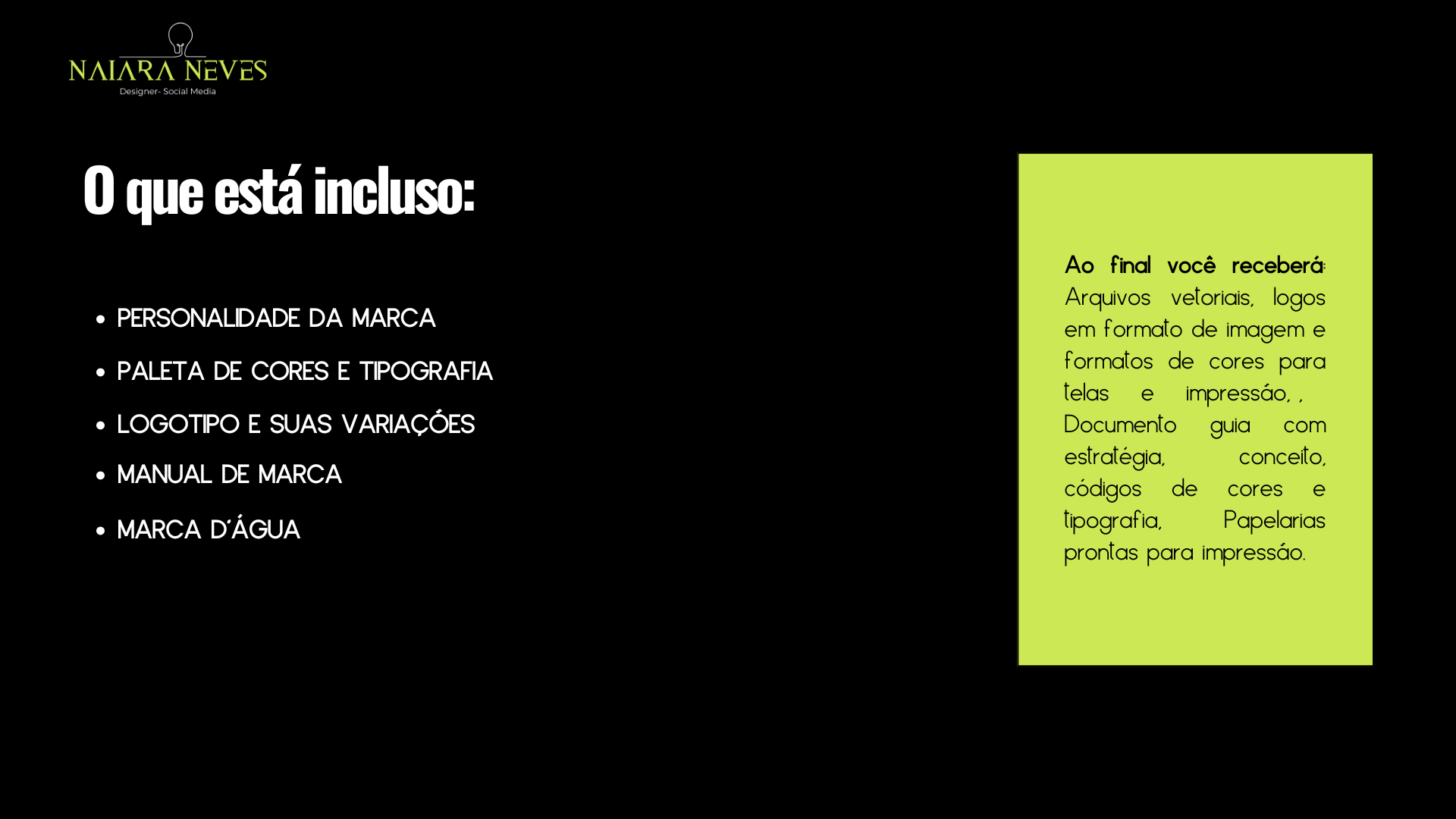Com este serviço, você terá uma identidade visual completa, pensada estrategicamente para destacar seu negócio e gerar conexão com o seu público.